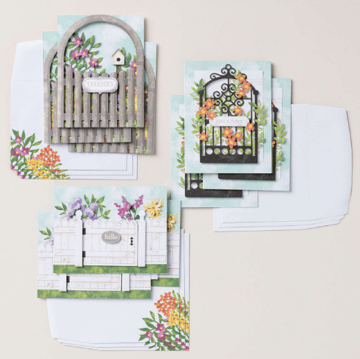 First off, these aren't your run-of-the-mill hobby store pipe-cleaner & wooden sticks craft projects – these projects are designed by artisans, often featuring exquisite artwork, specialty papers, and stepped-up dimensional elements... more like little boxes of joy that have pretty much everything (and I mean everything except scissors) tucked inside. With about 30 different kits to choose from in our Kits Collection, there's surely something for every creative spirit on your list. Whether your loved one is into card-making (most card kits come with supplies for 8-10 gorgeous cards with matching envelopes - shown in example above) or other delightful paper projects, these kits are perfect for crafting anywhere – from cozy living rooms to RV adventures. The best part? Most projects can be completed in one evening, making them perfect for those "me-time" moments or a fun crafting session with friends. And here's a practical bonus that I always appreciate: they come in sturdy rectangular boxes that I've found are a snap to wrap!